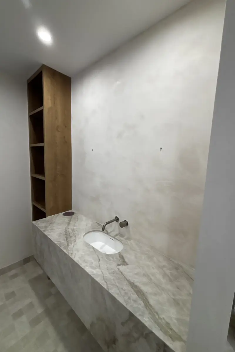 This versatile finish recreates the look of natural stone, offering the elegance of marble without the weight or cost. It’s an excellent choice for areas that require easy maintenance, such as kitchen surfaces. Marmorino provides a smooth, durable finish that’s both beautiful and practical.